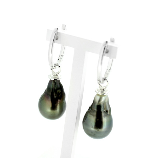 Deze pareloorhangers worden aan een wit of een geelgouden creool gehangen. De parels hebben een mooie diepe donker parelmoer kleur.