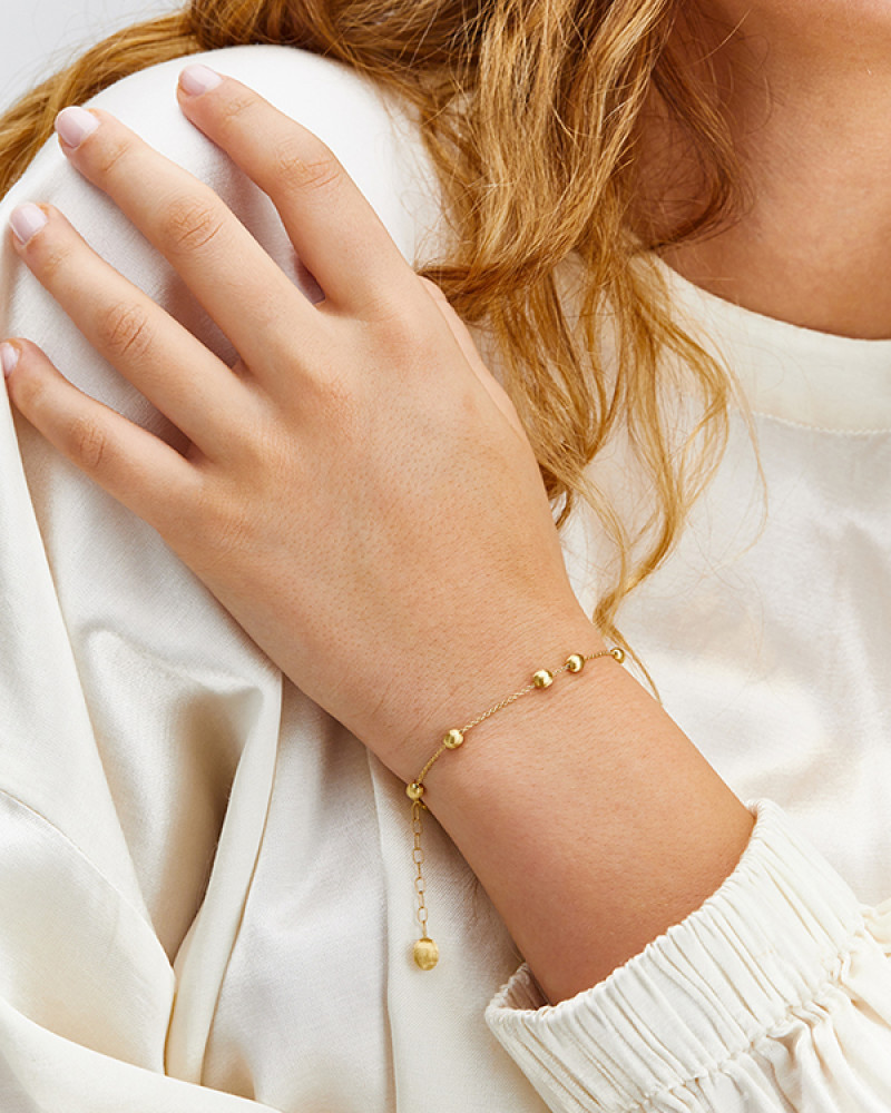 Deze Nanis armband uit de Dancing Elite familie is een 18 karaat geelgouden juweel met de referentie BN1-583. De armband heeft een lengte van 19,50 cm.