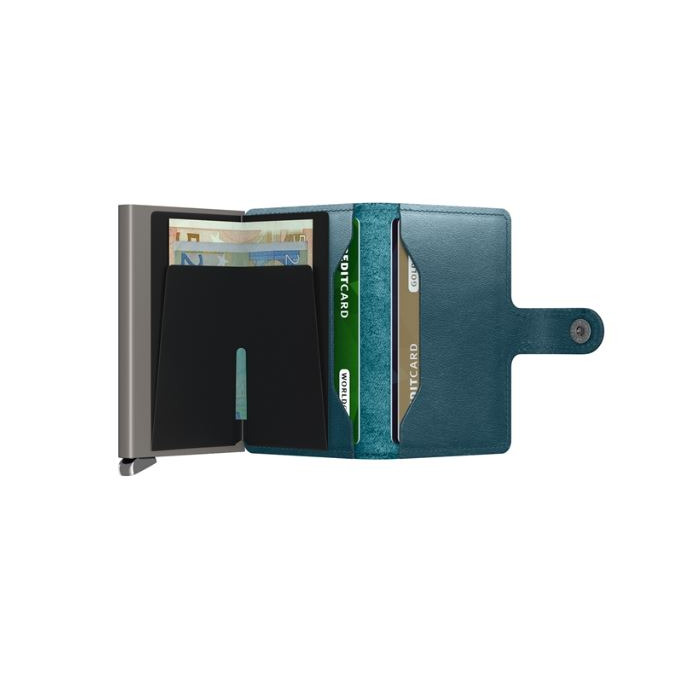 Deze Secrid Wallet Miniwallet Dusk Teal heeft een blauw leren buitenkant. MiniWallets sluiten met een drukknop. In de Cardprotector is plaats voor 6 vlakke of 4 verdikte kaarten. Daarnaast heeft u in de MiniWallet nog extra plaats voor verschillende bankbiljetten en visitekaartjes. Afmeting: 65 x 102 x 21mm