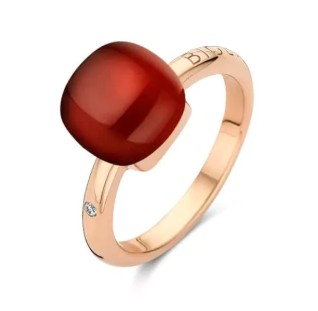 Deze Bigli ring 20R88Rsqpc uit de Mini Sweety collectie is vervaardigd uit 18 karaat rosé goud en gezet met briljant en een rookkwarts met koraal.