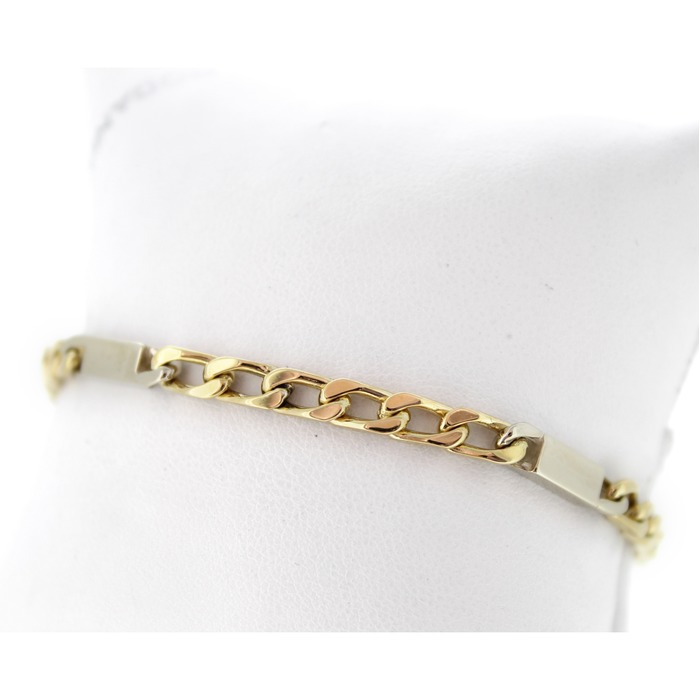 Dit tweedehands juweel is een armband vervaardigd uit bicolor wit en geelgoud 18karaat.