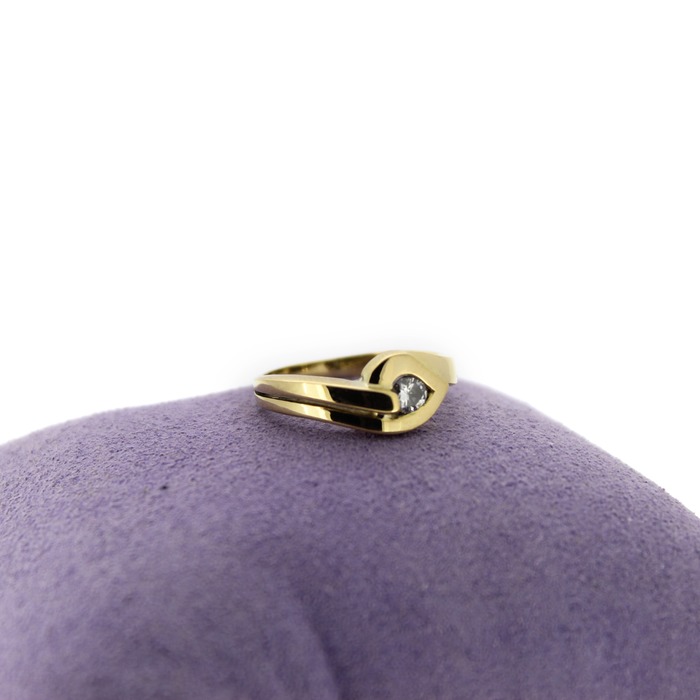 Deze tweedehands ring is vervaardigd uit geelgoud 18 karaat. De ring is gezet met een briljant.