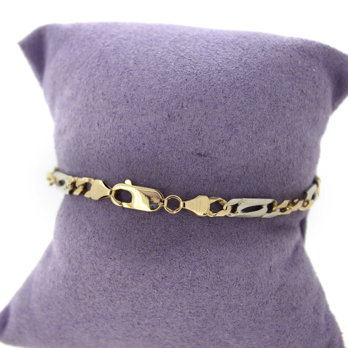 Dit tweedehands juweel is een armband, vervaardigd uit bicolor wit en geelgoud 14 karaat.