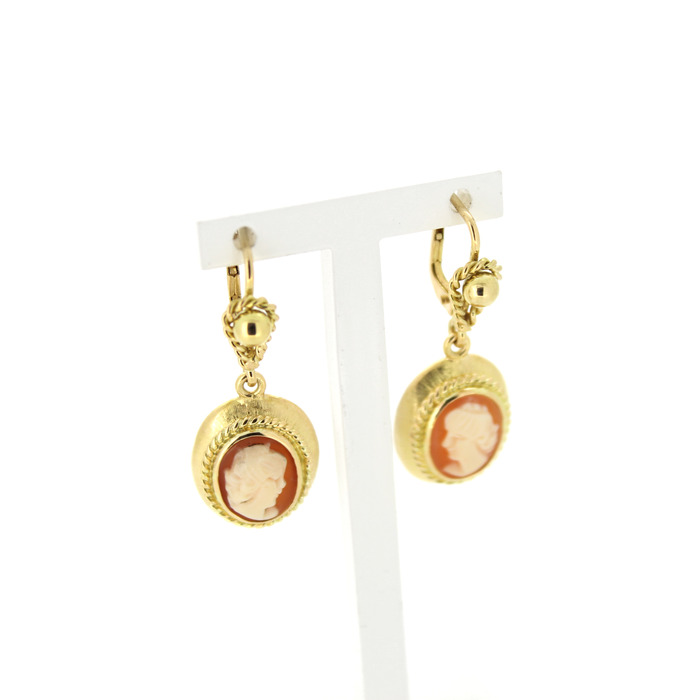 Deze tweedehands Camé oorbellen zijn vervaardigd uit geelgoud 18 karaat.