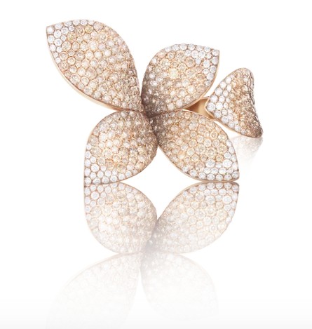 Deze Pasquale Bruni ring uit de Giardini Segretti collectie is een 18 karaat roségoud juweel met de referentie 15115R. De ring is gezet met witte diamanten 0.56ct en champagne diamanten 2.63ct.