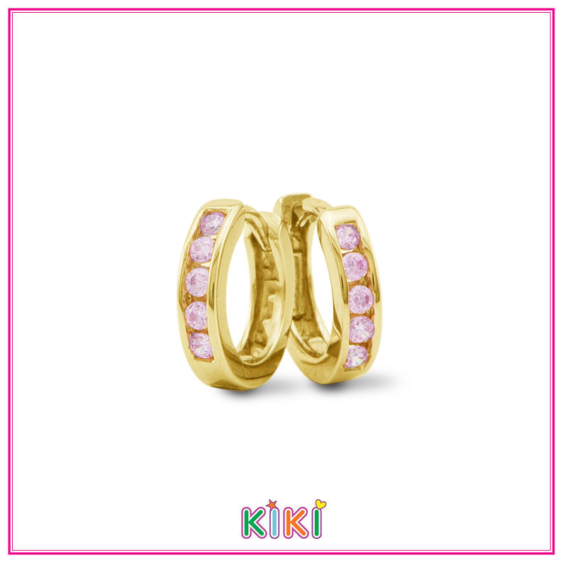 Deze oorbellen zijn uit de Kiki collectie. Deze oorbellen met referentie 65035Y/2 zijn vervaardigd uit zilver 925 en belegd met pleetgoud en afgewerkt met roze zirconium steentjes.