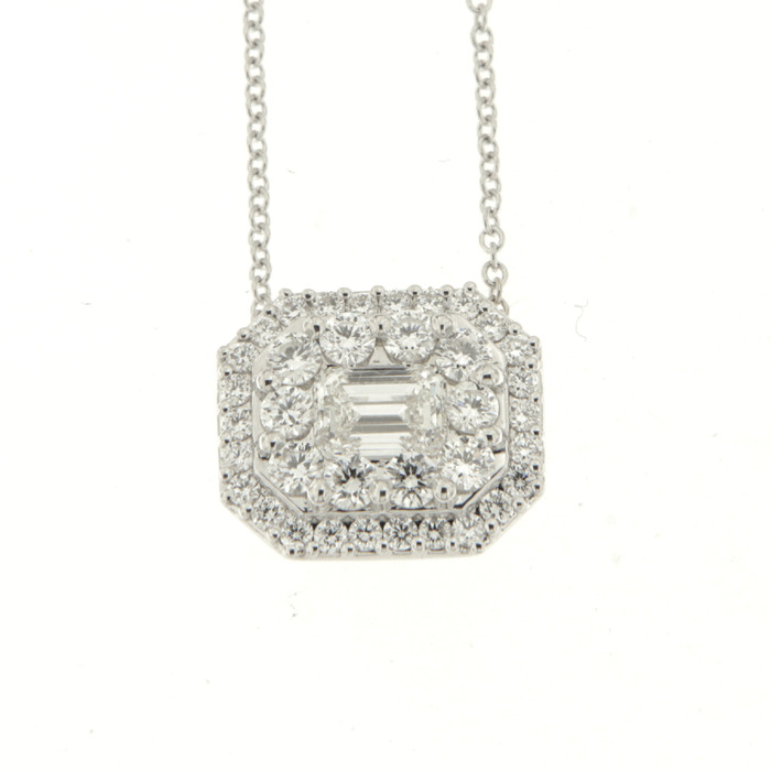 Deze Clem Vercammen ketting 12463/2*S , vervaardigd uit 18 karaat witgoud, is gezet met diamanten, met een totaal van 1.00ct.