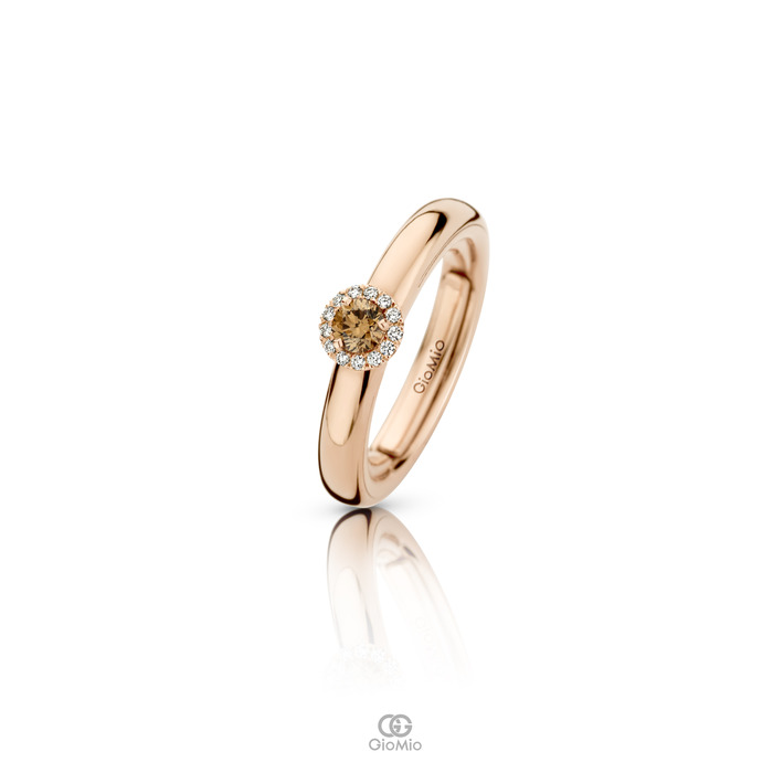 Deze Gio Mio ring is een 18 karaat rosé gouden juweel met de referentie RF6004CD. De ring is gezet met diamanten met een totaal gewicht van 0.28ct.