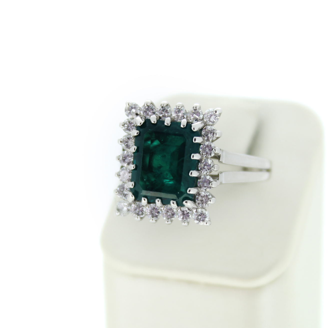 Pré-Owned Ring in 18 Karaat Witgoud met Smaragd en Zirconium