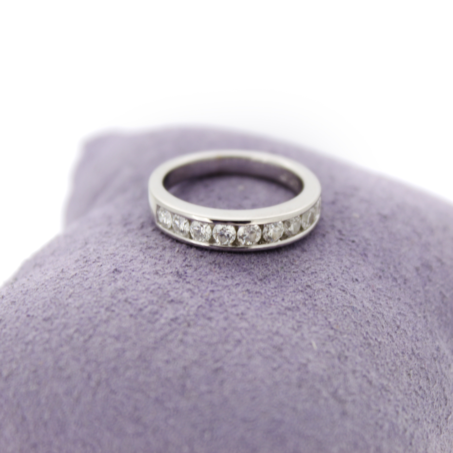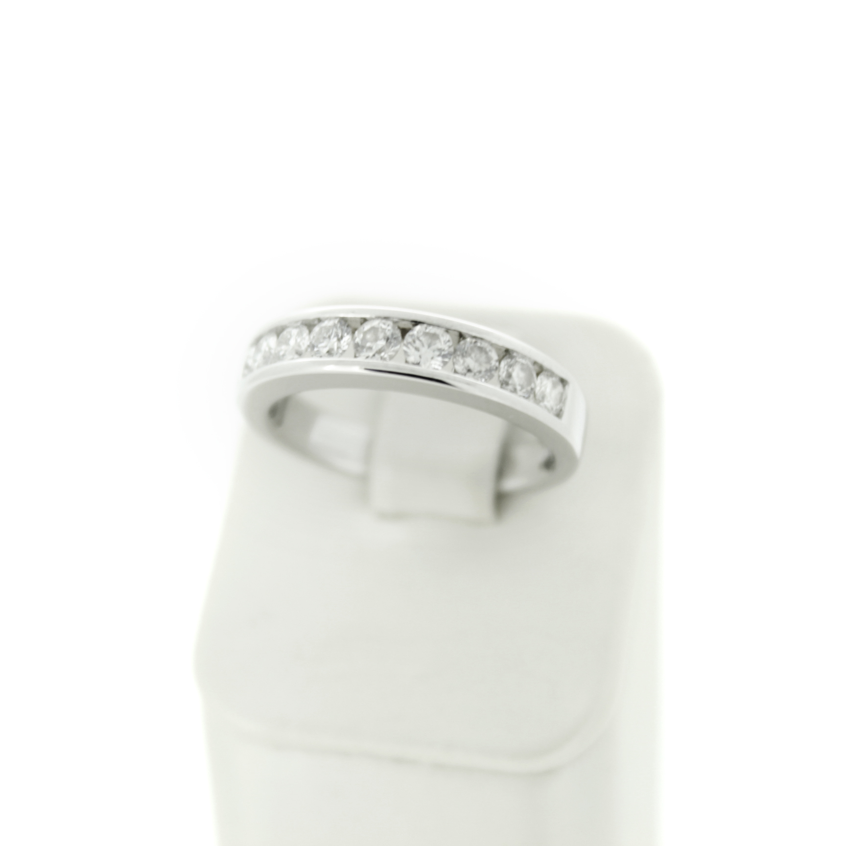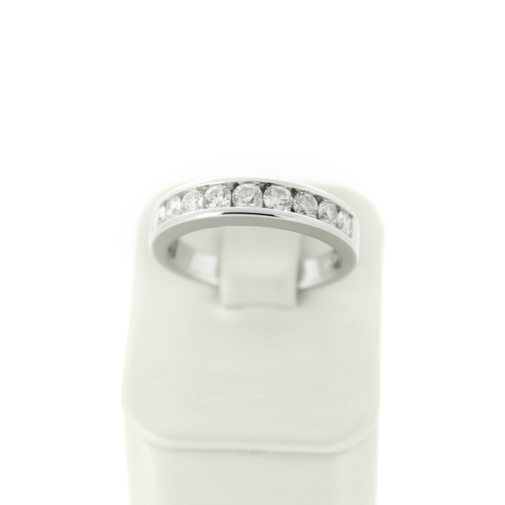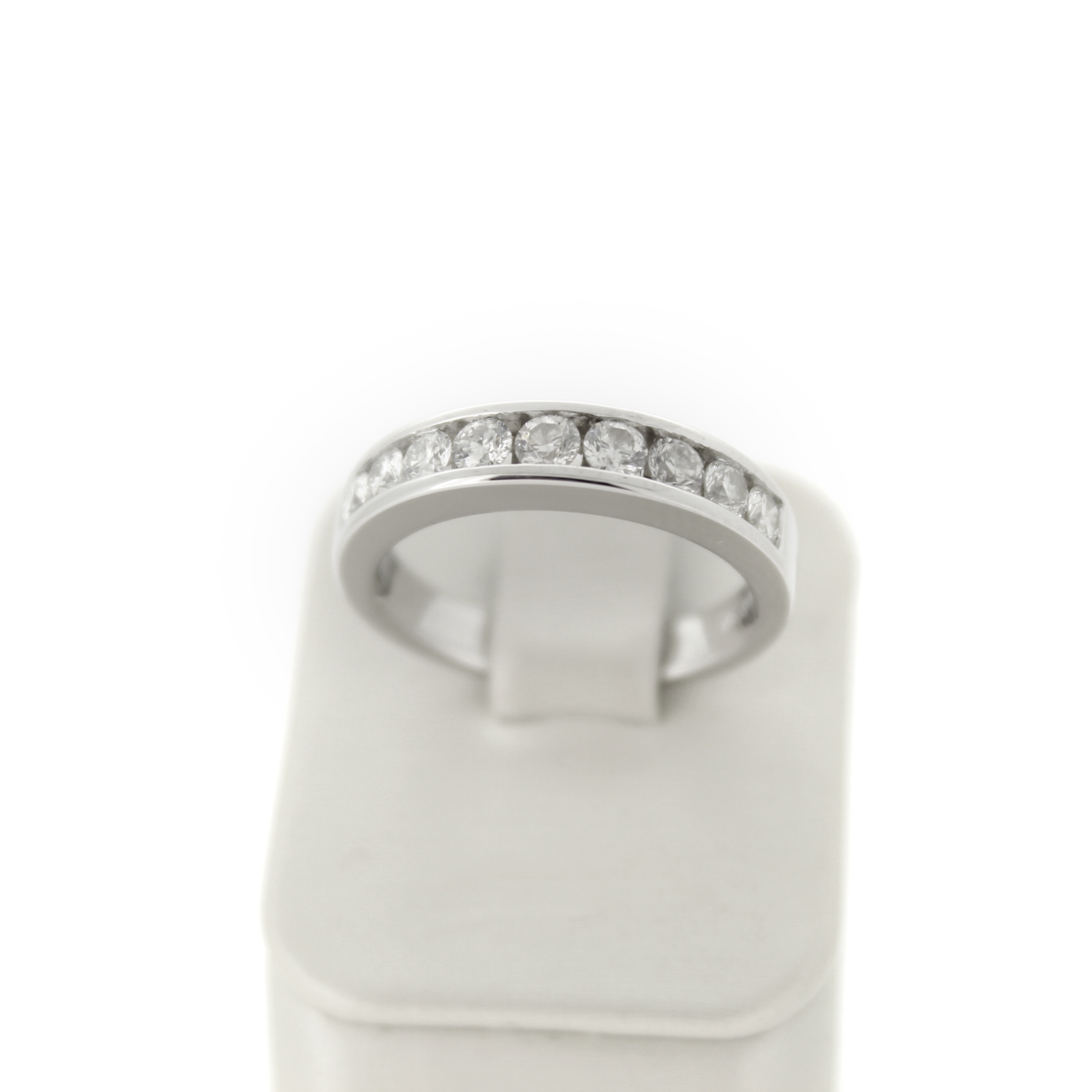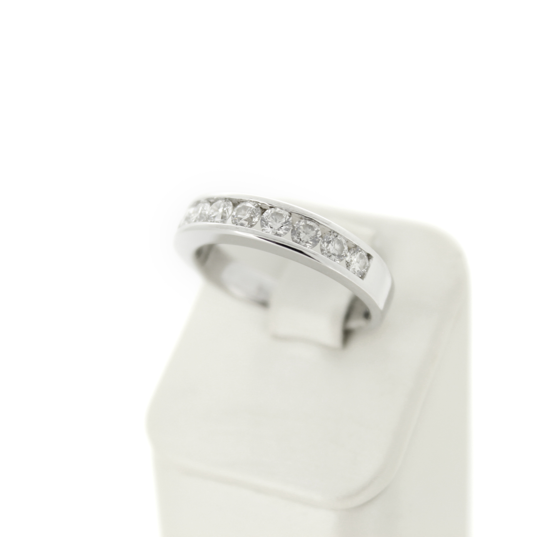 Deze tweedehands ring is vervaardigd uit witgoud 18 karaat. De 18 karaat witgouden ring is gezet met briljanten.
