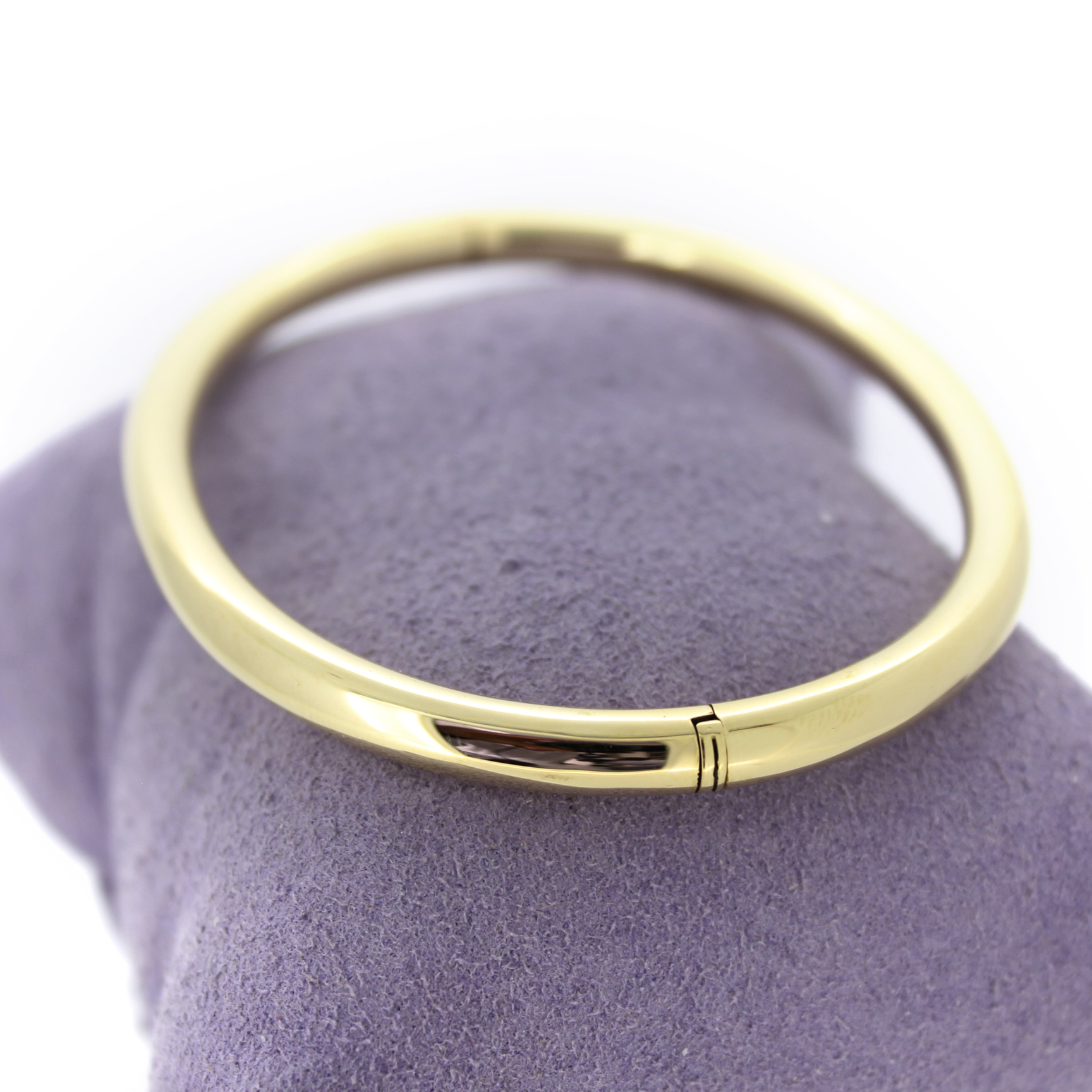 Deze verfijnde pre-owned esclave is vervaardigd uit 18 karaat geelgoud en straalt tijdloze elegantie uit. Het klassieke ontwerp combineert een luxueuze uitstraling met comfortabel draaggemak, waardoor het een perfect statement-sieraad is voor elke gelegenheid.