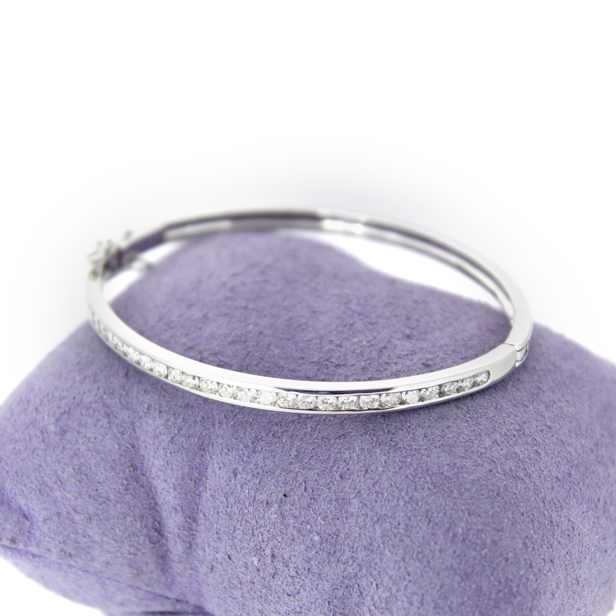 Dit tweedehands juweel is een Esclave armband vervaardigt in witgoud 18 karaat en is online te koop in onze tweedehands webshop. De armband is gezet met 30 briljanten.